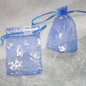 Organza vrečka – modra, z metulji, 9cm x 12cm